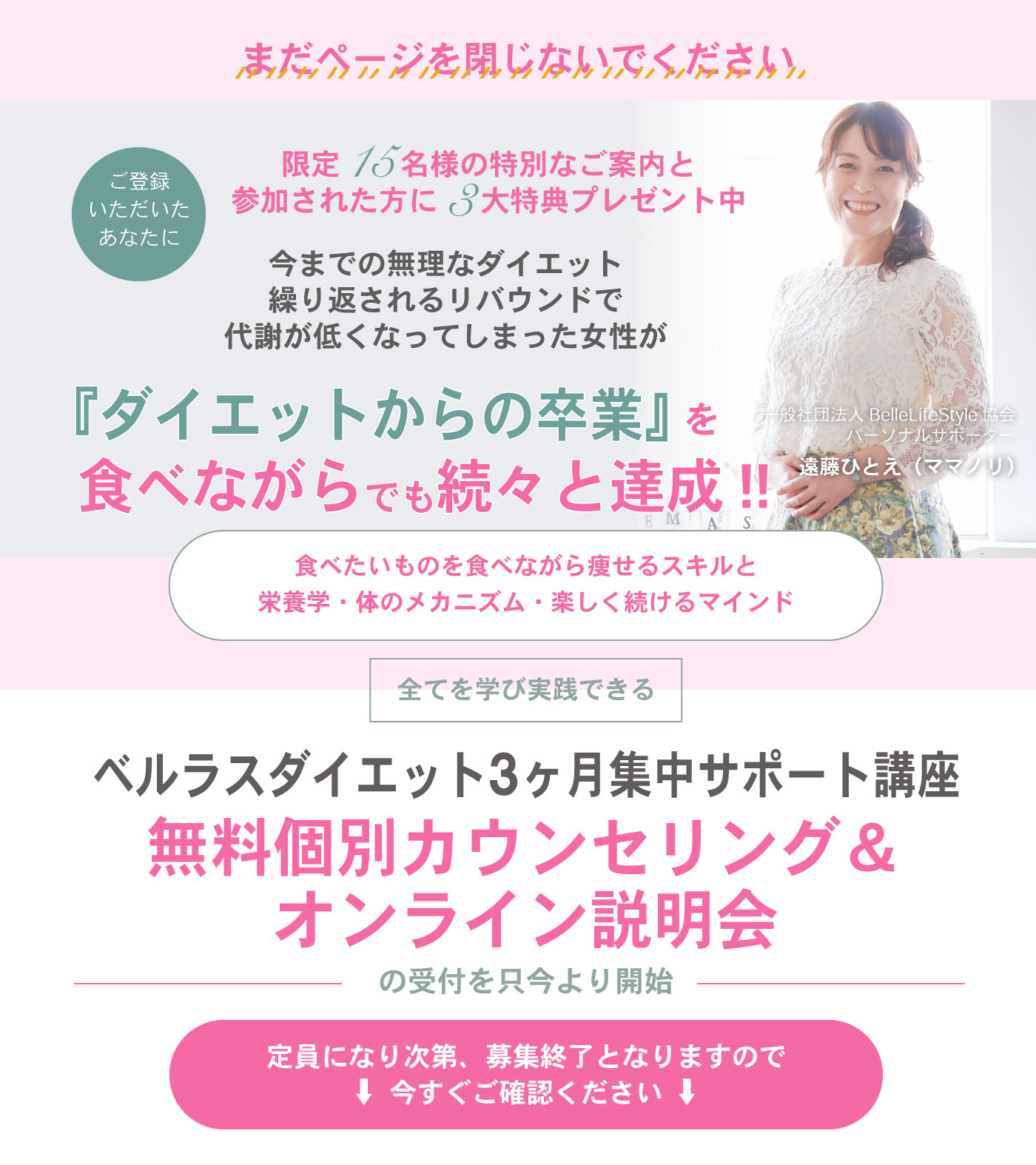 この度は、『ベルラスダイエット』無料動画講座にご登録いただきありがとうございます。