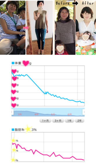 痩せてる時の写真を見ては、もう戻れないのかな〜と落胆していました。バランスよく食事をとるのが難しそうで、料理嫌いな私にできるかと不安でした。めんどくさがり屋なので食事のレポートもちゃんと続けられるか不安でした。