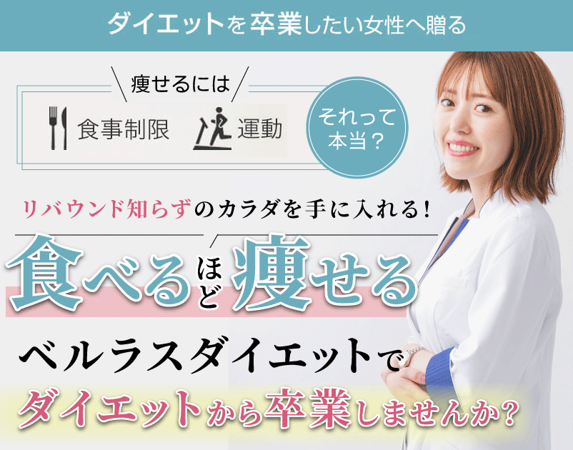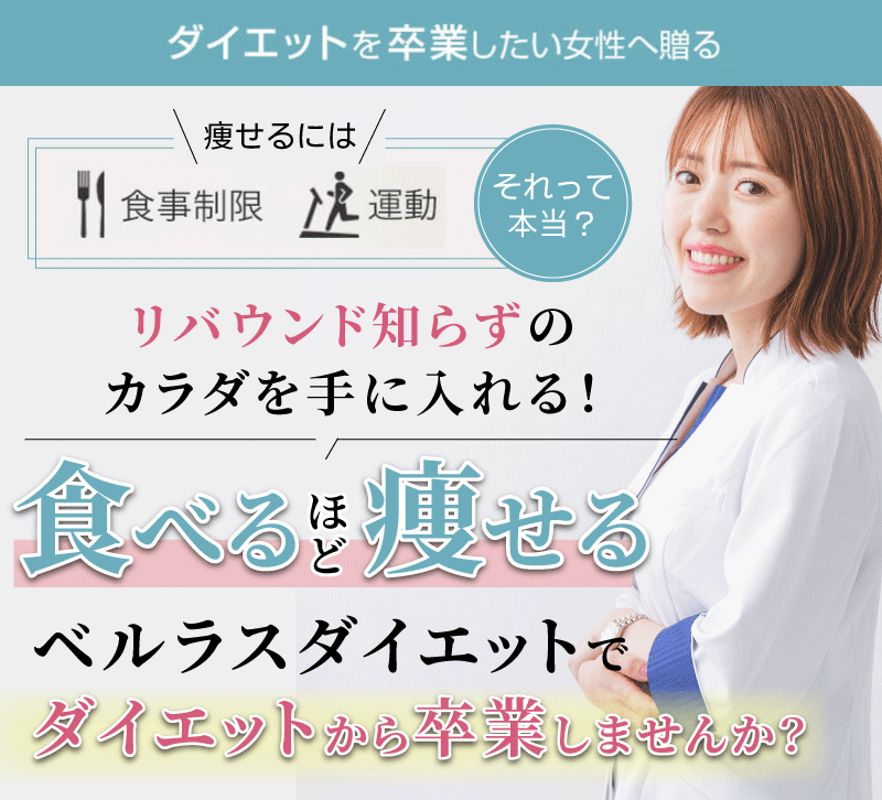 ベルラスダイエットのメソッドは、管理栄養士と医師の監修を受けています。 徹底的に栄養学を取り入れた、たしかな食事方法です。